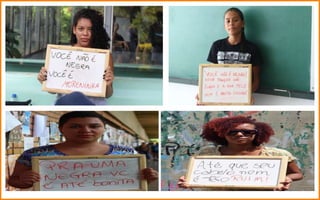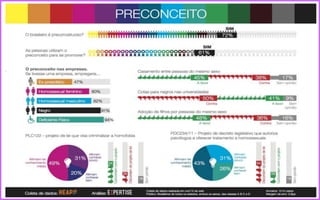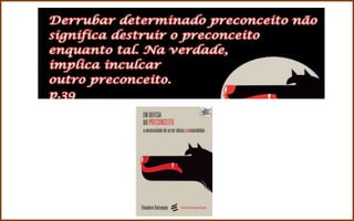 O documento apresenta o conteúdo programático de um bimestre sobre preconceito, discriminação, racismo e segregação. Inclui debates sobre cotas raciais, feminismo e adoção por famílias homoafetivas. Também aborda conceitos como igualdade, equidade, desigualdade, machismo e feminismo.
