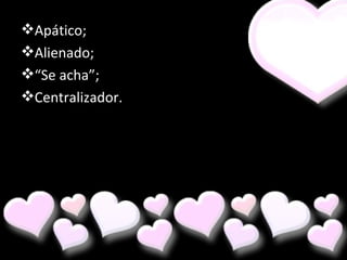 Este documento descreve dois tipos de gestores. O primeiro é apático, alienado, egocêntrico e centralizador, não se envolve com os outros e não pede ajuda. O segundo acredita na gestão democrática e participativa, é estratégico, criativo, colaborativo e promove a formação contínua dos funcionários por meio do planejamento participativo e da descentralização.