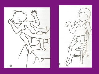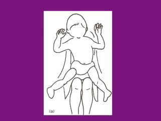O documento lista vários tipos de manuseios corretos e incorretos para crianças, incluindo manuseios, carregamentos, disposições de quarto e posições para dormir, com foco em crianças com necessidades especiais.