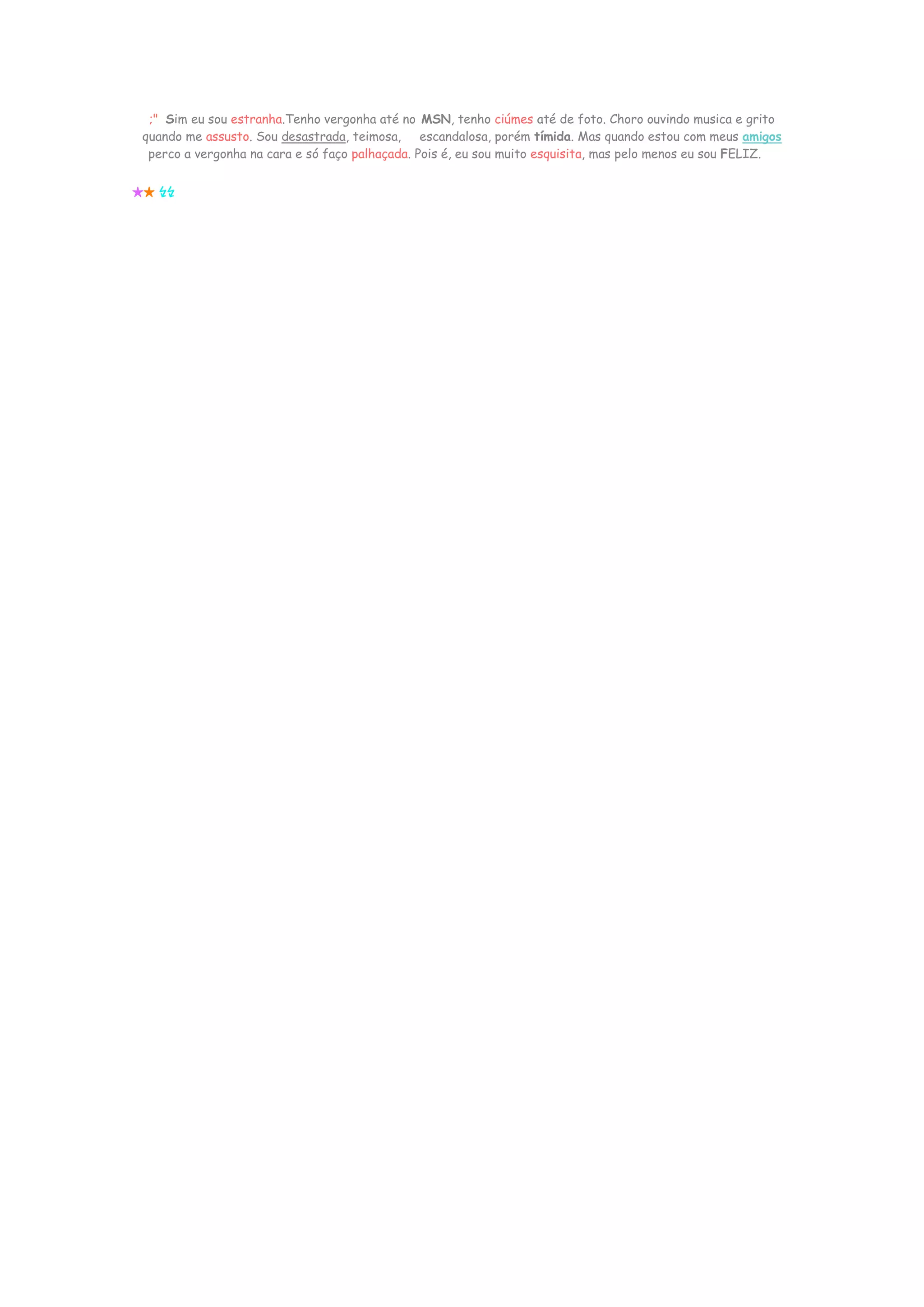 perco a vergonha na cara e só faço palhaçada. Pois é, eu sou muito esquisita, mas pelo menos eu sou FELIZ.