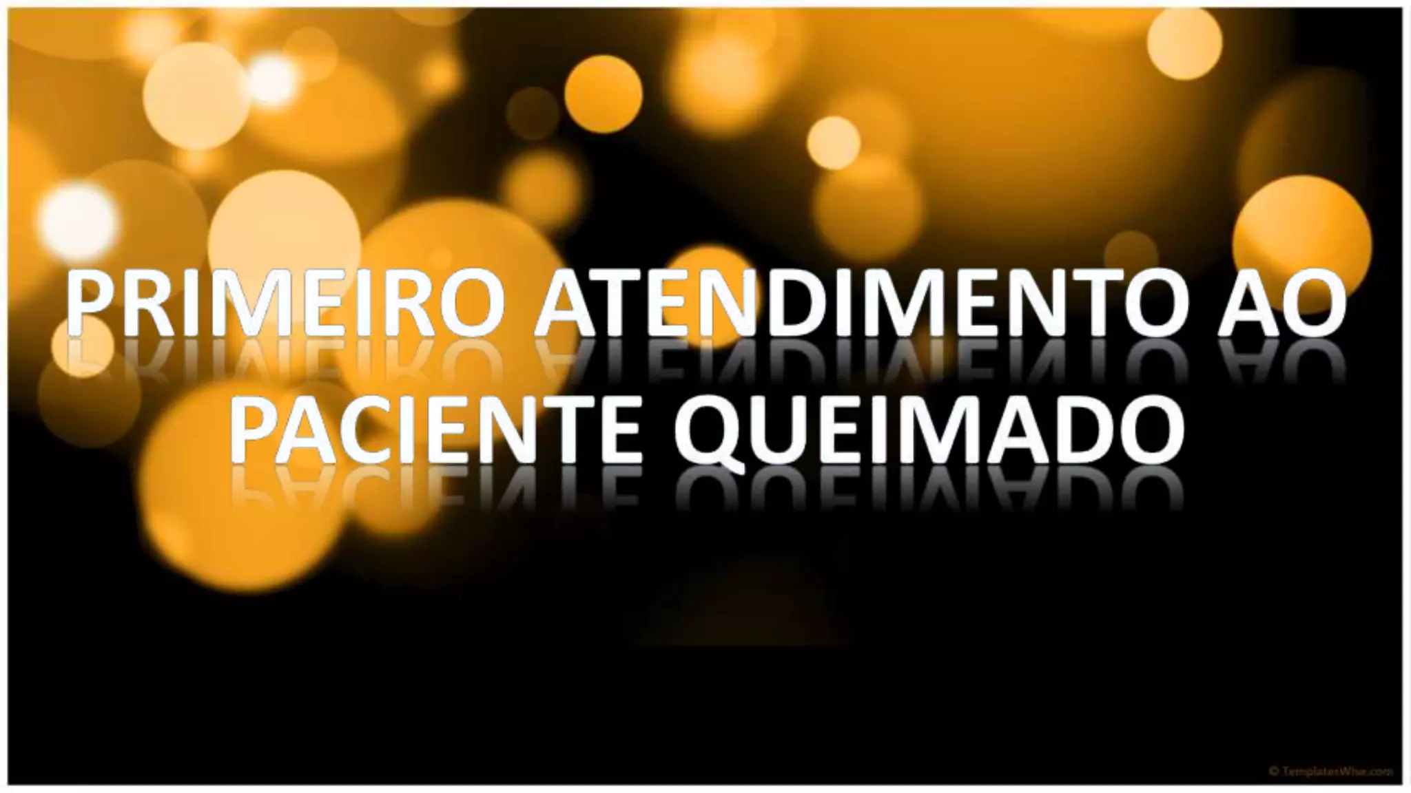 O documento discute classificações e cuidados para queimaduras de diferentes graus, incluindo queimaduras térmicas, químicas, elétricas e por radiação. Ele fornece diretrizes para a avaliação inicial da vítima, como segurança, interrupção da queimadura e avaliação primária e secundária. Também discute cuidados específicos como hidratação, analgésicos e limpeza da lesão para queimaduras de 1o, 2o e 3o grau.