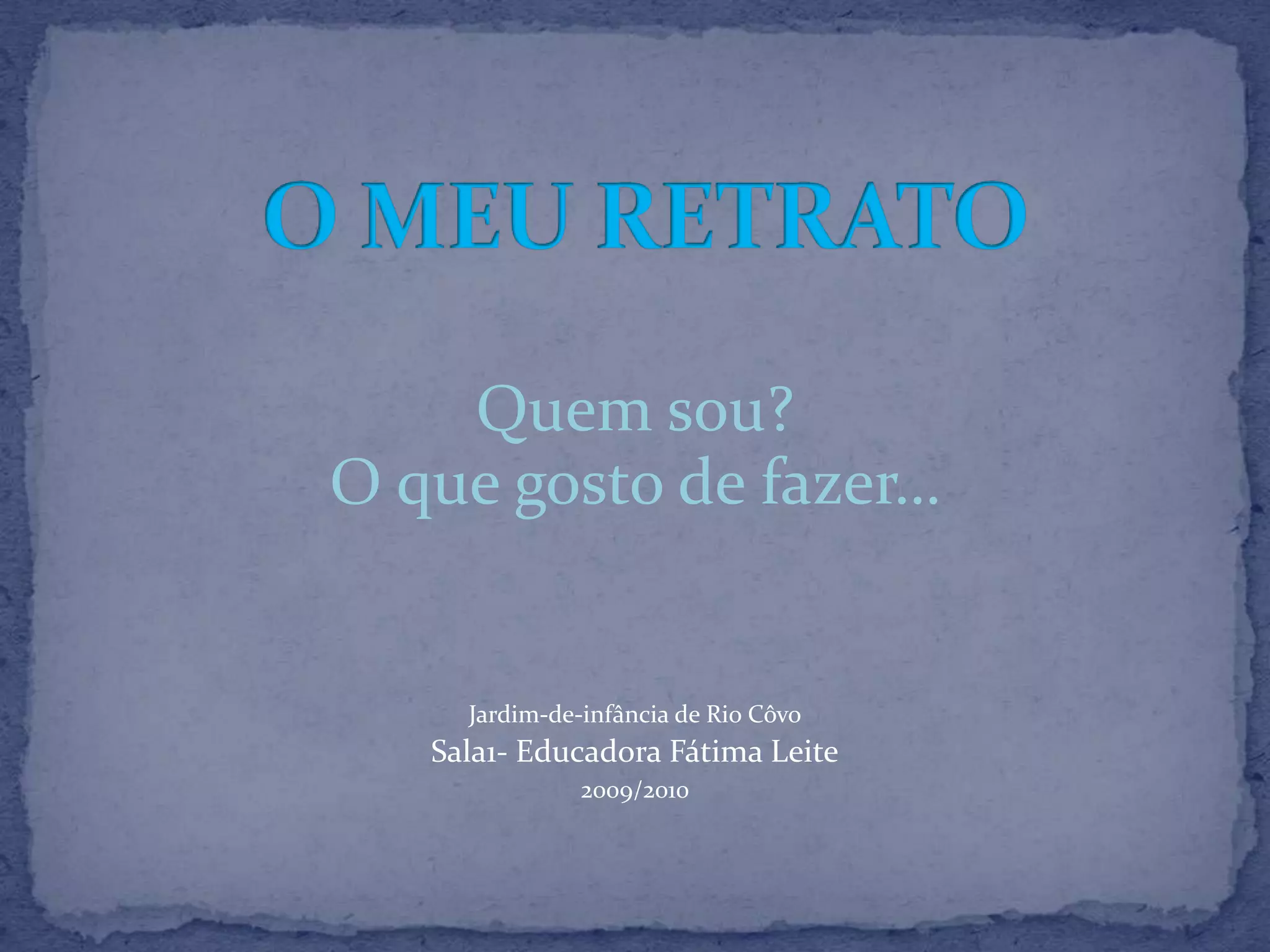 O MEU RETRATOQuemsou?O que gosto de fazer…Jardim-de-infância de Rio CôvoSala1- Educadora Fátima Leite2009/2010