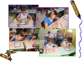 O documento descreve um projeto de troca-troca literário realizado na turma de 3o ano do Colégio Municipal Maria Luiza de Melo. O projeto tem como objetivo promover o compartilhamento de livros entre as crianças e discutir temas como meio ambiente e preservação ambiental. A turma apresentou uma paródia sobre o assunto durante o evento.