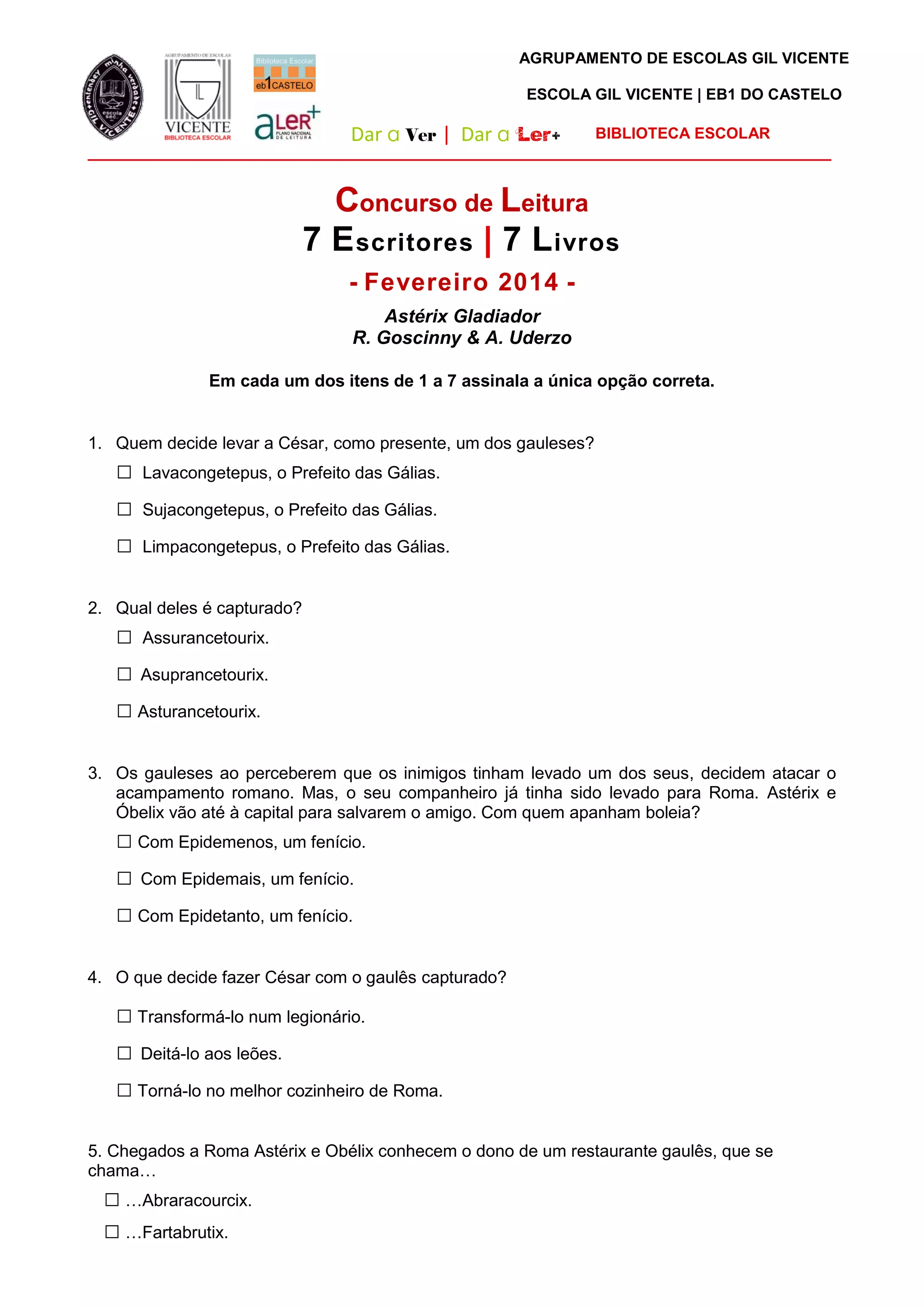 O documento é um resumo do livro "Astérix Gladiador", de René Goscinny e Albert Uderzo. Conta que um gaulês é capturado e levado a Roma para lutar como gladiador. Astérix e Obélix viajam para a capital para resgatá-lo, enfrentando desafios como a vida nas ínsulas romanas. No final, conseguem salvar o amigo e derrotar o lanista que o forçou a lutar.