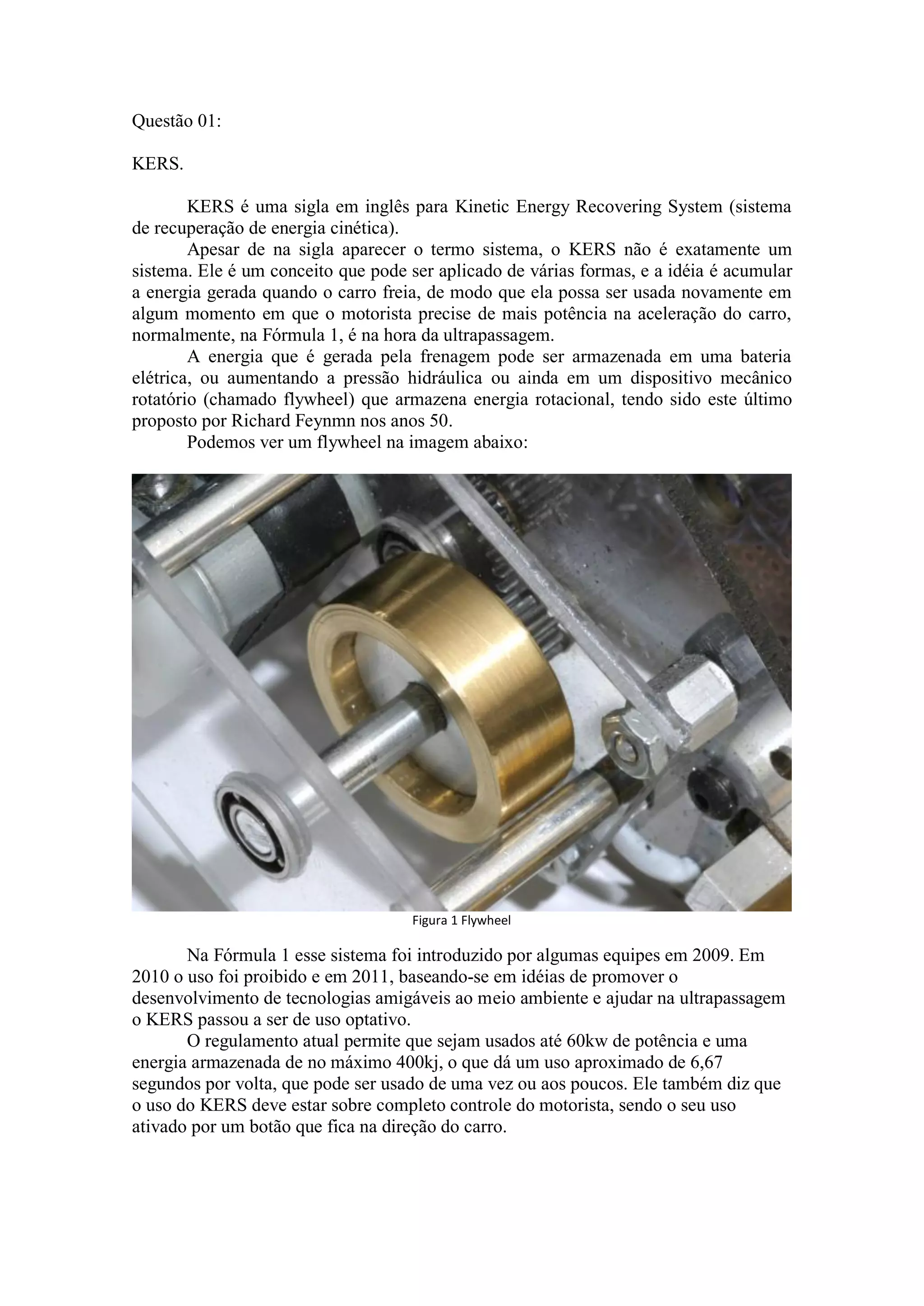 O KERS é um sistema de recuperação de energia cinética que permite armazenar a energia gerada na frenagem de um carro e reutilizá-la para aceleração, normalmente em ultrapassagens. A energia pode ser armazenada em baterias, hidraulicamente ou em um dispositivo mecânico rotativo chamado flywheel. O KERS foi introduzido na Fórmula 1 em 2009 e é opcional desde 2011, permitindo até 60kW de potência extra por até 6,67 segundos por volta.