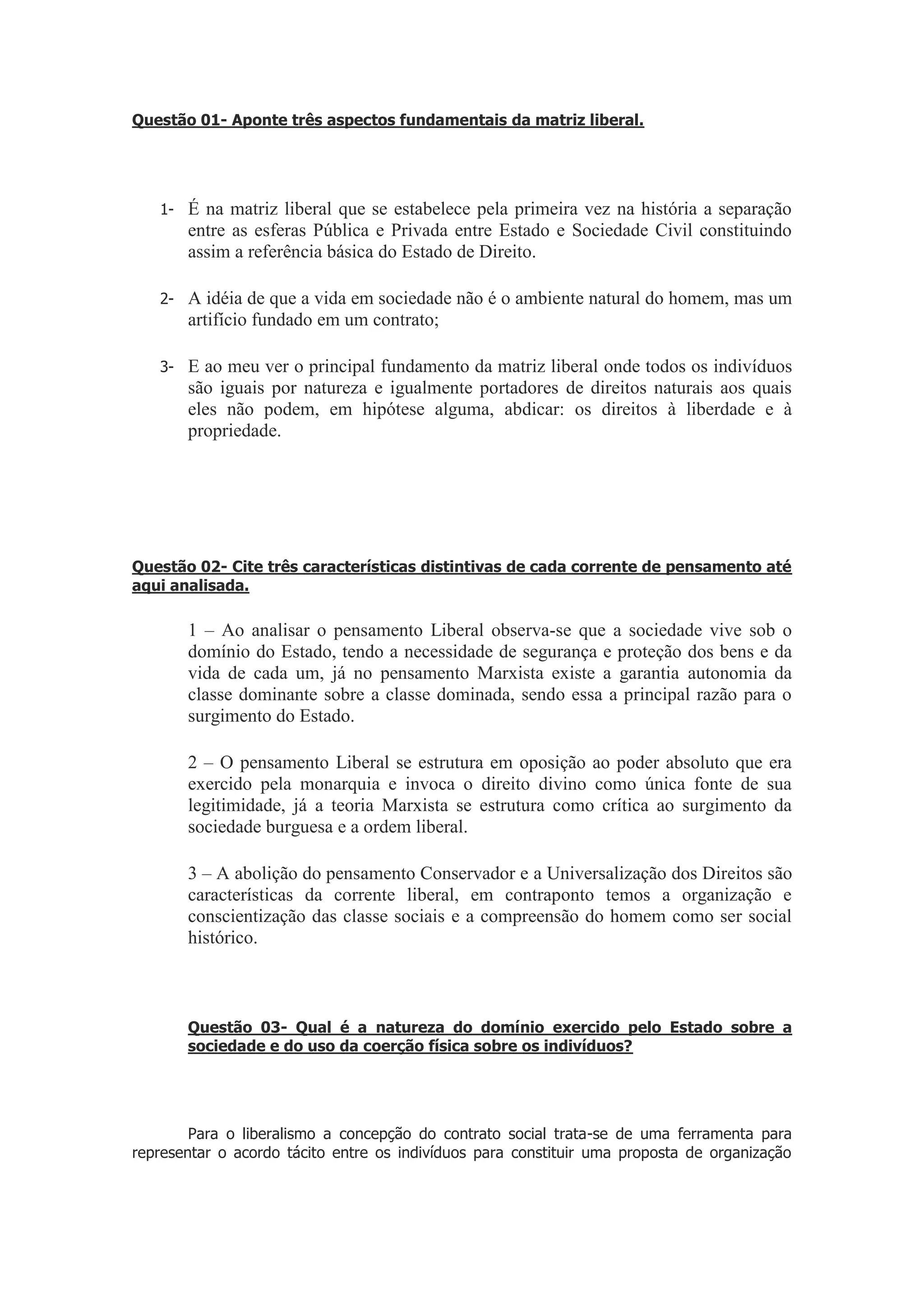 2) O liberalismo se opõe ao poder absoluto da monarquia e defende direitos universais, enquanto o marxismo critica a sociedade burguesa e enfatiza a luta de classes e o homem como ser social histórico.