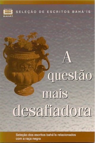 Este documento discute a questão racial e a promoção da unidade entre as raças. Ele contém excertos de escritos de Bahá'u'lláh, 'Abdu'l-Bahá e Shoghi Effendi que enfatizam que todas as raças são iguais perante Deus, que a unidade racial é essencial e que as distinções de cor são secundárias em relação à unidade espiritual da humanidade. O documento também fornece uma breve introdução e referências bibliográficas.