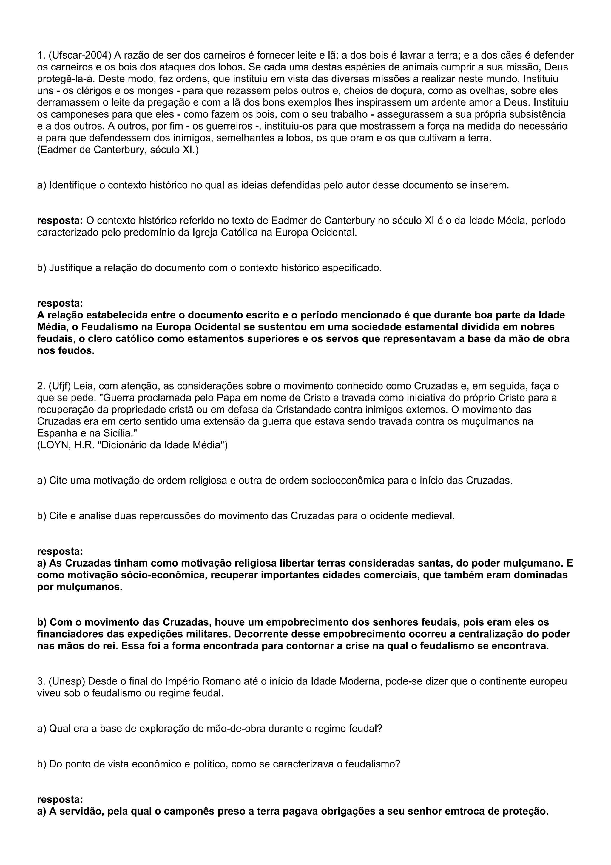 1. O documento defende que na Idade Média cada espécie animal tinha uma missão divinamente ordenada: carneiros forneciam leite e lã, bois lavravam a terra e cães defendiam os outros animais de lobos.