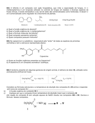 O documento apresenta um programa de recuperação em Química Orgânica para alunos do 3o ano do Ensino Médio. O programa inclui tópicos como representação de moléculas orgânicas, grupos funcionais, isomeria, e reações orgânicas. Exercícios relacionados aos tópicos são fornecidos para os alunos resolvam.
