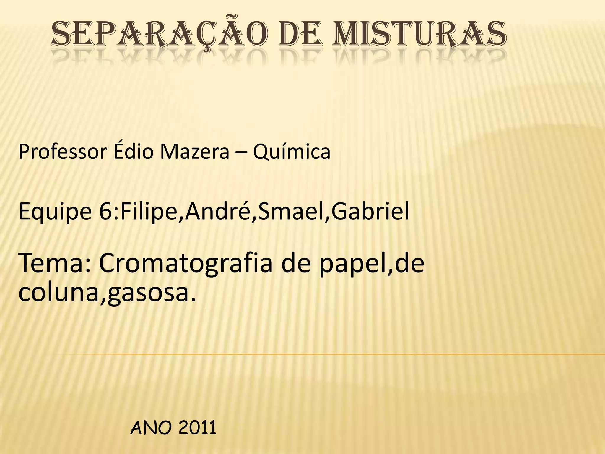 O documento descreve os principais tipos de cromatografia, incluindo a história da técnica inventada por Mikhail Tswet em 1900 e suas aplicações na separação de misturas. Discute a cromatografia de papel, de coluna e gasosa, explicando os conceitos-chave de fases móvel e estacionária envolvidas no processo de separação cromatográfica.