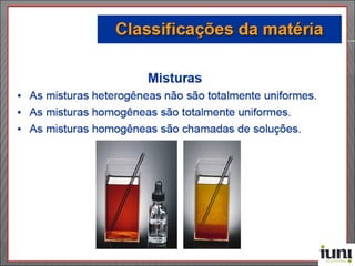 2) A concentração de uma solução pode ser expressa de diferentes formas, como percentagem em massa, volume ou massa-volume e concentração molar.
