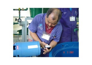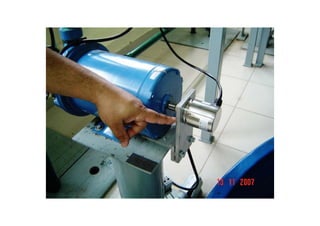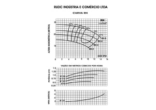O documento discute o ponto de trabalho de uma bomba hidráulica, que é obtido pela interseção da curva característica da instalação com a curva característica da bomba. Isso porque neste ponto a bomba é capaz de fornecer a carga manométrica necessária para a vazão requerida pelo sistema. O documento também destaca a importância de se obter o ponto de trabalho o mais próximo possível do ponto de projeto para garantir eficiência, e como fatores como a rotação real podem alterar a curva característica da