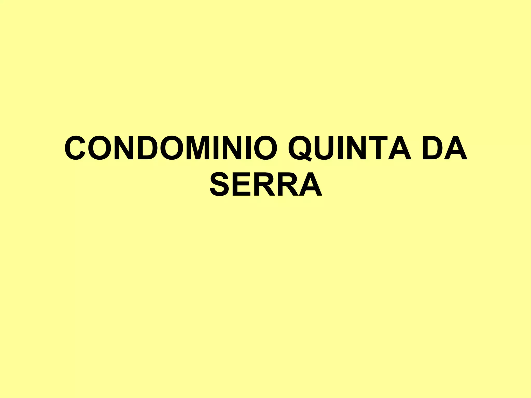 Este documento lista os condomínios, casas e edifícios localizados no Condomínio Quinta da Serra, bem como os detalhes de contato de uma imobiliária que vende propriedades na região.