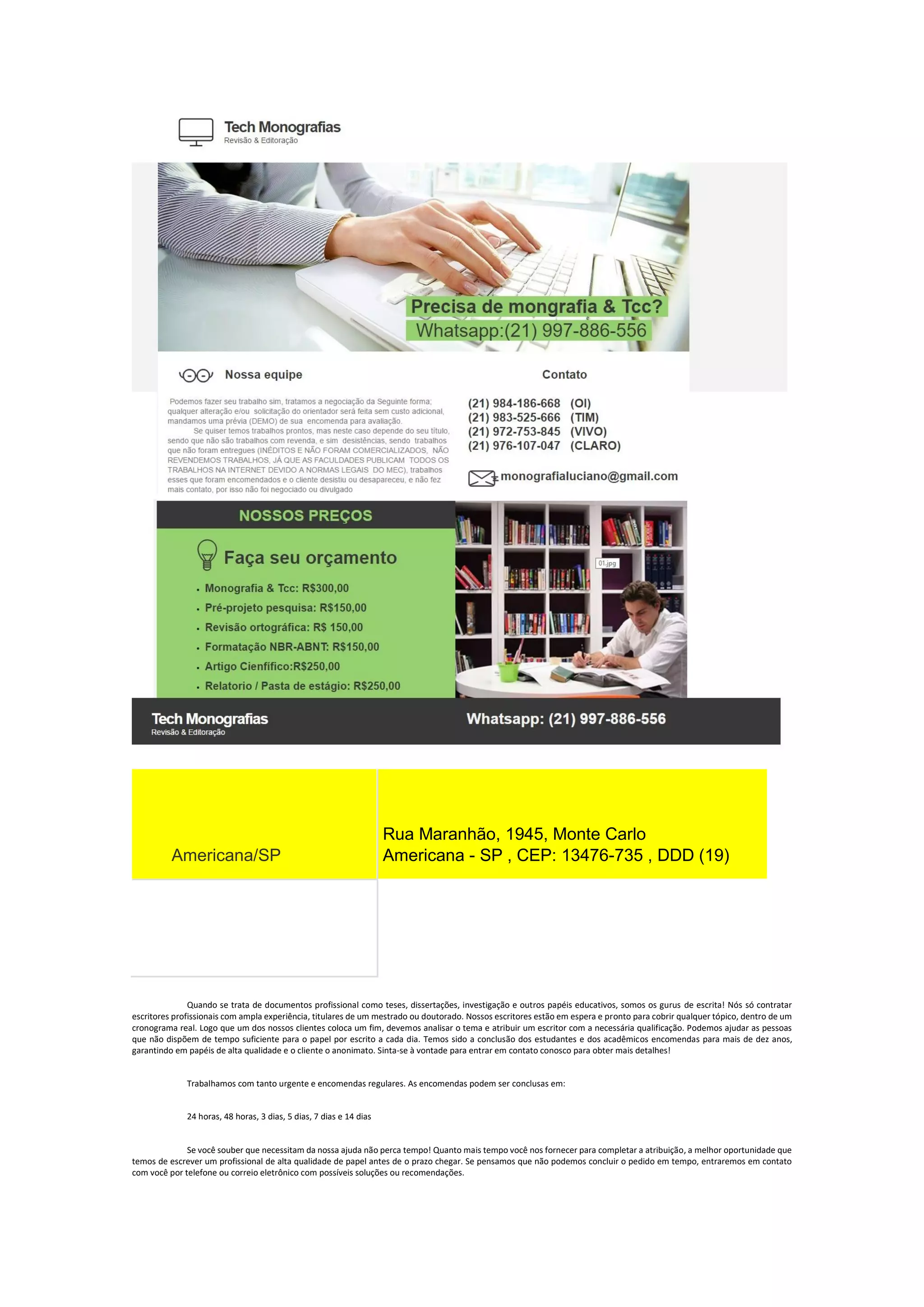 Este documento descreve os serviços de uma empresa de escrita de documentos acadêmicos. A empresa contrata apenas escritores profissionais com experiência e titulações avançadas para escrever teses, dissertações e outros trabalhos. Os clientes podem encomendar trabalhos com diferentes prazos de entrega, desde 24 horas até 14 dias. A empresa garante o anonimato dos clientes e a qualidade do trabalho.