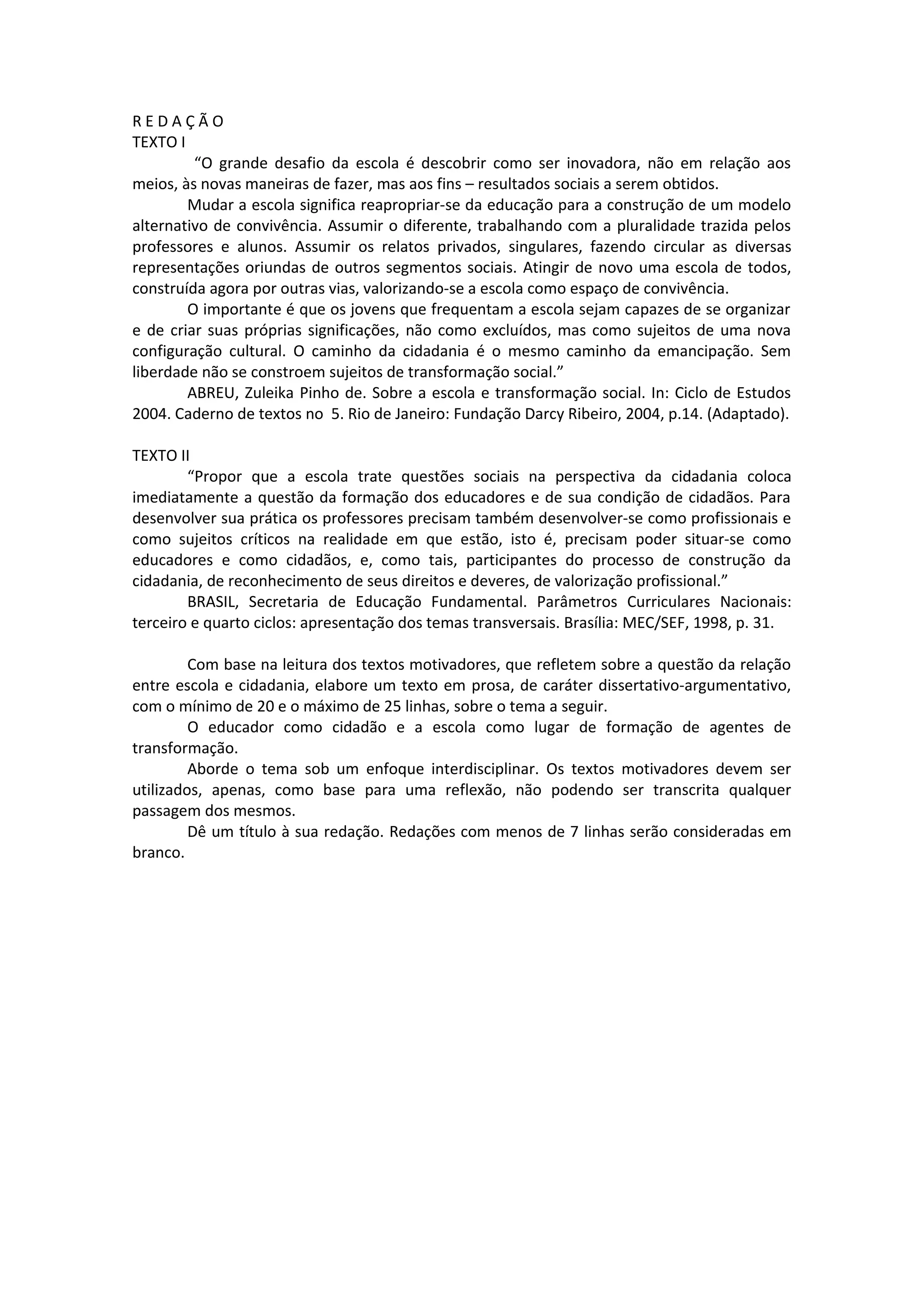 O documento discute como a escola pode se tornar um espaço de construção de cidadania e formação de sujeitos de transformação social. Defende que a escola deve valorizar a diversidade trazida por alunos e professores e assumir perspectivas diferentes para construir uma escola inclusiva. Também argumenta que os professores precisam se desenvolver como cidadãos críticos para ensinar questões sociais e participar do processo de formação de cidadania.