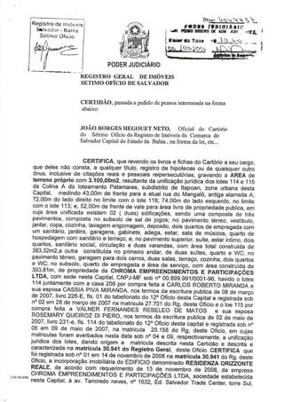 O documento descreve o bairro de Patamares em Salvador, Bahia, onde está localizado o empreendimento Residenza Orizzonte Reale. Patamares foi o primeiro bairro planejado da América Latina e foi projetado pelo arquiteto Lúcio Costa, com projeto paisagístico de Burle Marx. O bairro oferece alta qualidade de vida com vista para o mar e acesso fácil a escolas, shoppings e praias. O Residenza Orizzonte Reale está localizado na Colina A de Patamares e