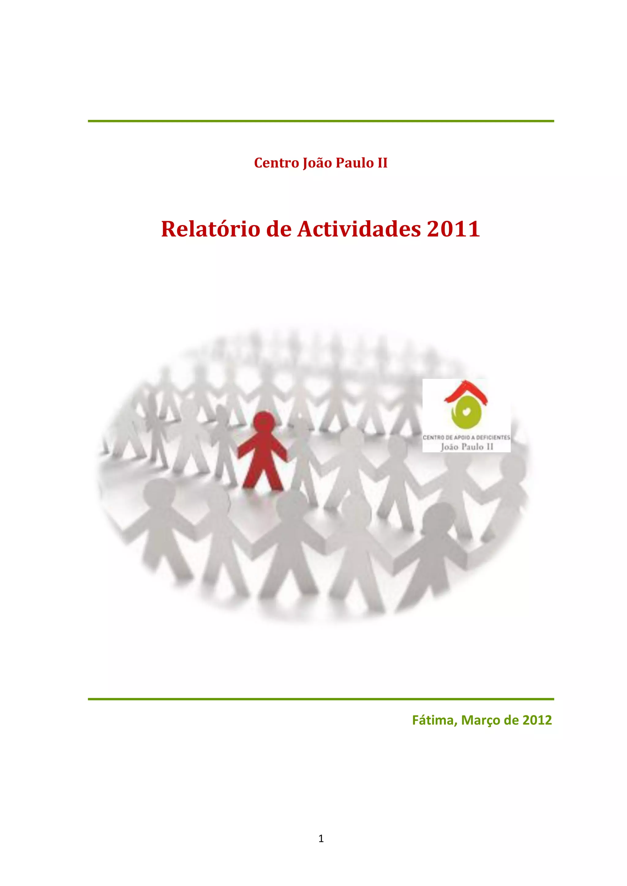 O relatório descreve as atividades e resultados do Centro João Paulo II em 2011. De modo geral, os colaboradores, famílias, e parceiros estão satisfeitos com os serviços prestados, embora haja áreas para melhoria. Os colaboradores estão insatisfeitos principalmente com o reconhecimento e remuneração. As famílias desconhecem as normas internas mas estão mais cientes dos planos de intervenção dos residentes. Os parceiros estão satisfeitos com as parcerias estabelecidas.