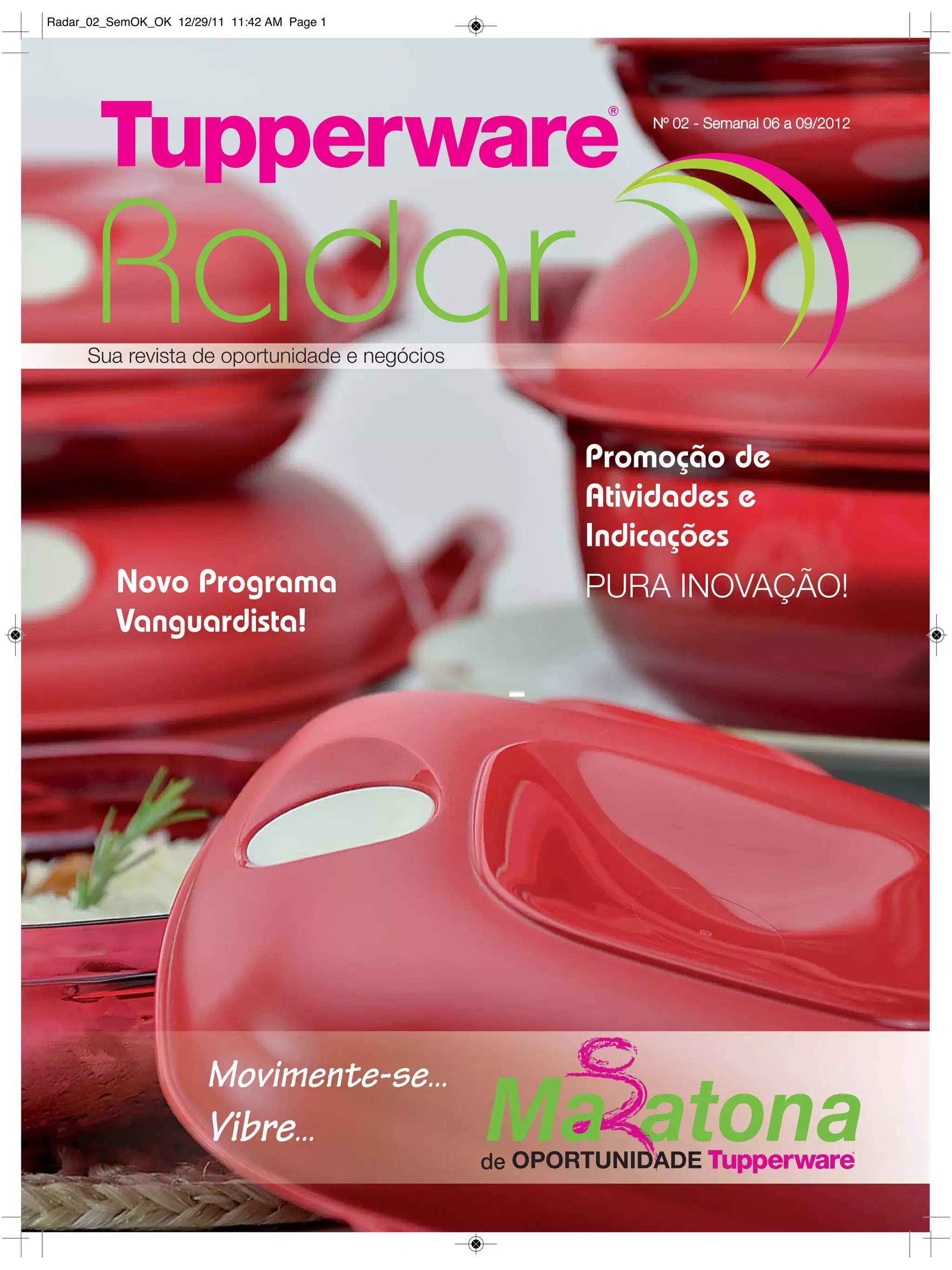 O documento apresenta uma promoção de indicações para revendedoras e executivas Tupperware entre as semanas 06 a 09 de 2012, oferecendo brindes como guarda-chuva, kits de produtos, utensílios para cozinha e eletrodomésticos ativando novos corações para a empresa. Além disso, anuncia treinamentos sobre como obter bons resultados na Maratona de Oportunidade em 1o de março.