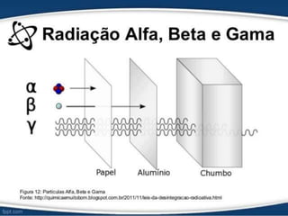 2. Há três tipos principais de radiação emitida - partículas alfa, beta e raios gama - que alteram o número atômico ou de massa do átomo.