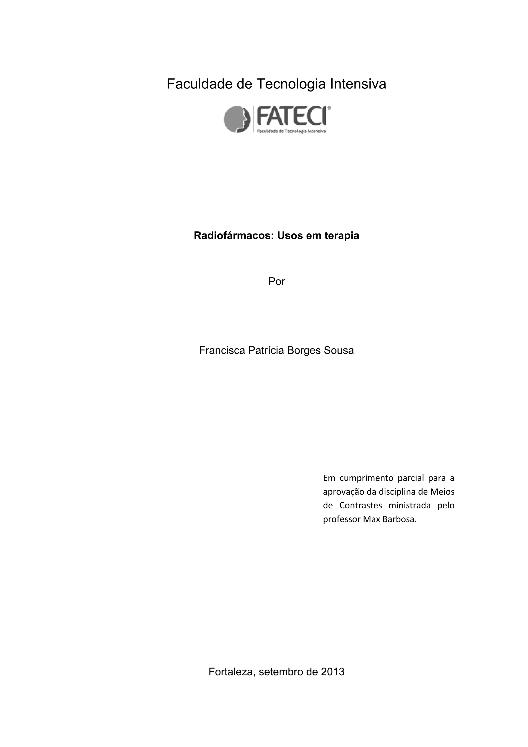 Este documento discute o uso de radiofármacos em terapia na medicina nuclear. Ele explica que radiofármacos são preparações à base de radionuclídeos que são usados para diagnóstico e tratamento. Os principais usos terapêuticos incluem o tratamento de hipertireoidismo e câncer de tireoide com iodo-131, neuroblastoma com MIBG-I-131, e metástases ósseas com samário-153.