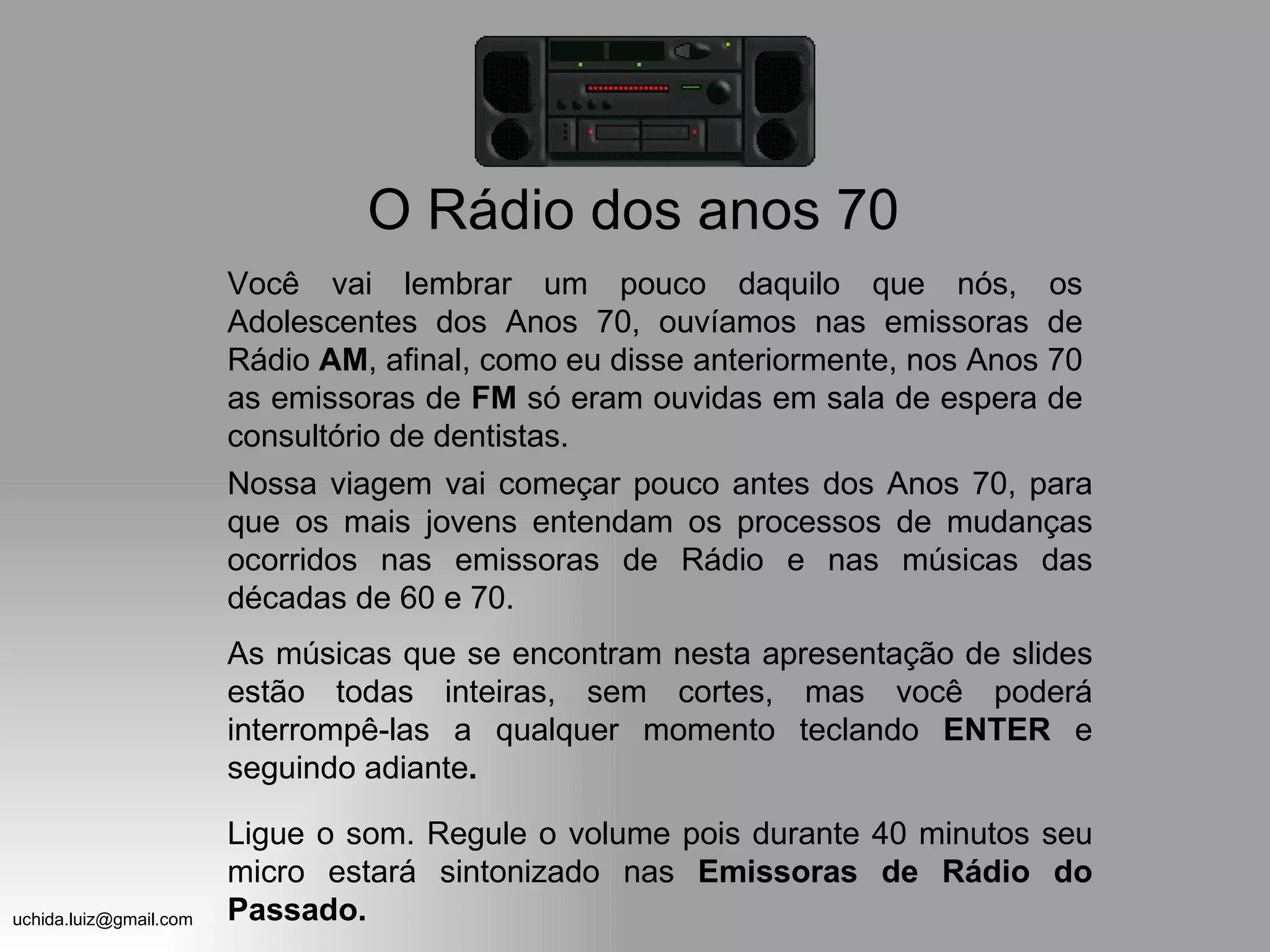 1) O documento descreve as rádios e programas populares dos anos 60 e 70 no Brasil, como o Programa Moraes Sarmento e o Repórter Esso.