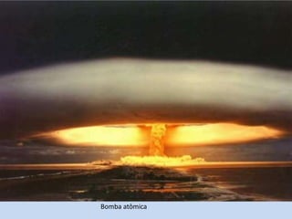 O documento discute diversos tipos de radiação, incluindo radiação alfa, beta e gama. Também aborda infravermelho, ultravioleta, radiação de fundo, raios catódicos, raios-X e radiação de nêutrons. Por fim, explica sobre radioterapia e seus efeitos.