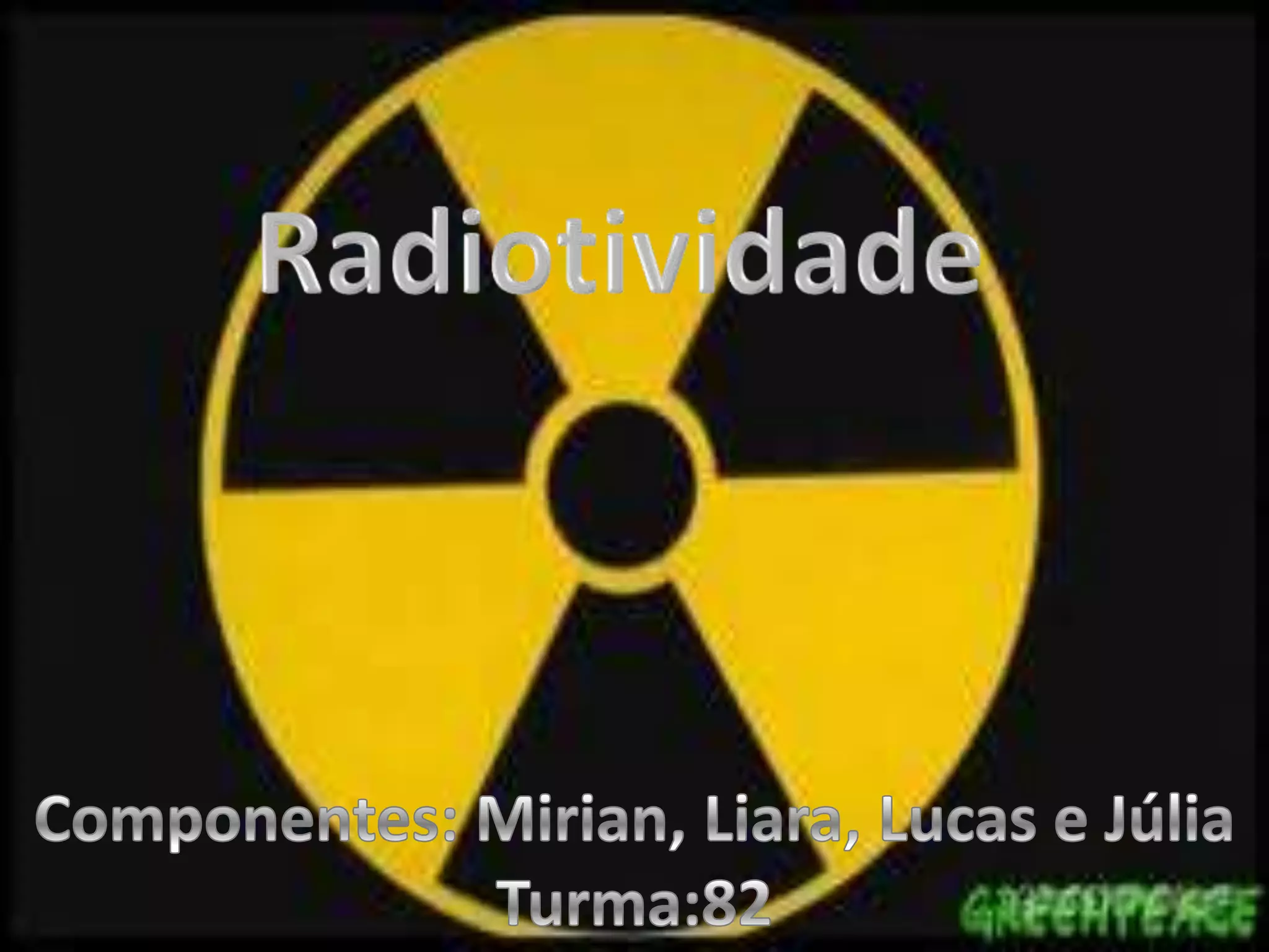 O documento discute a radiatividade, incluindo sua ocorrência natural e artificial, suas leis, efeitos na saúde humana e importância para a evolução da saúde, agricultura e indústrias. A radiatividade pode ser benéfica em pequenas doses para diagnóstico e tratamento, mas em grandes quantidades pode alterar o sistema biológico e causar câncer. Quando usada corretamente, a radiatividade pode auxiliar, mas usada de forma exagerada pode ter sérias consequências.