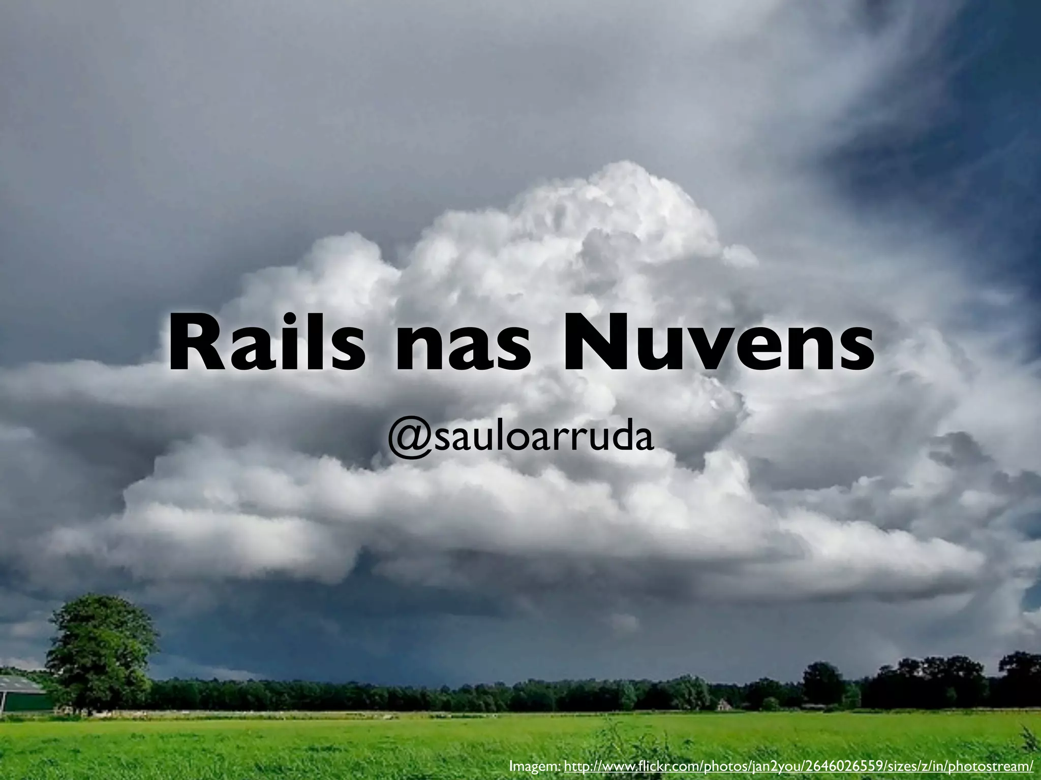 O documento discute ferramentas, serviços e práticas para implementar aplicações Rails na nuvem. Ele fornece detalhes sobre ferramentas como Ruby, Phusion Passenger, Nginx, Chef e Capistrano, além de serviços de nuvem como Amazon EC2, Heroku e Engine Yard. O documento também aborda práticas recomendadas como configuração automatizada, deploy contínuo, replicação e alta disponibilidade.