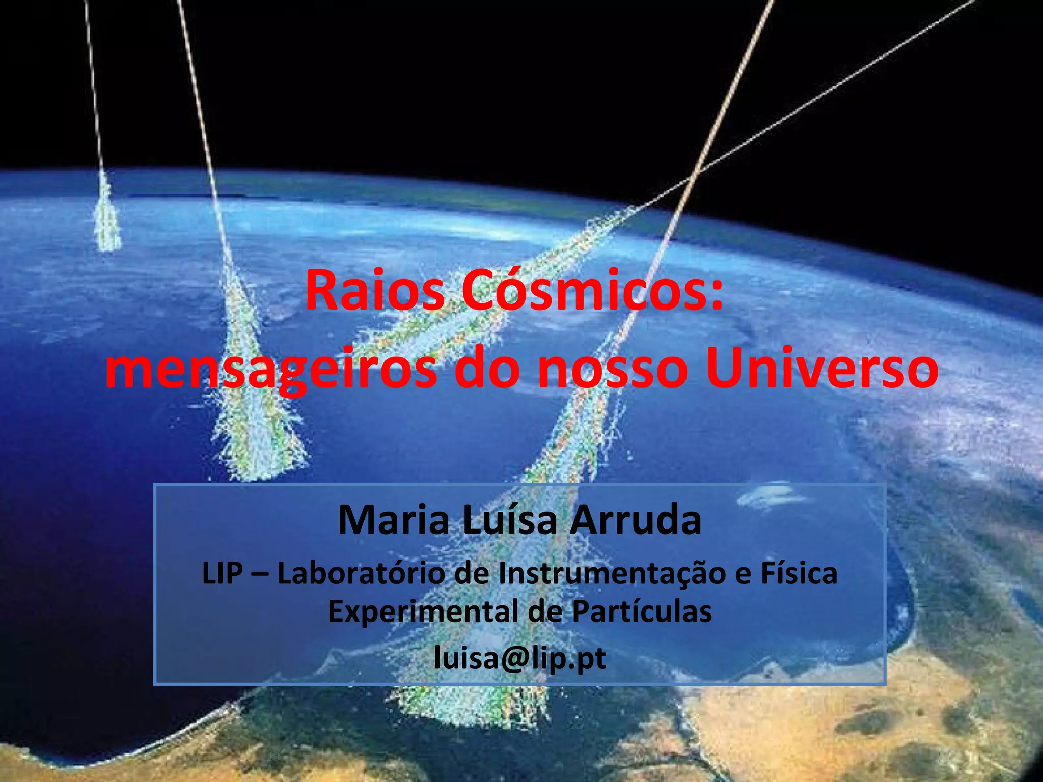 O documento discute a história da descoberta dos raios cósmicos e sua importância para a física de partículas. Os raios cósmicos são partículas carregadas que chegam da galáxia e do espaço interestelar e intergaláctico. Experimentos iniciais mediram a ionização em diferentes altitudes, revelando que a radiação vem do espaço exterior. Posteriormente, detectores como câmaras de nuvens identificaram novas partículas elementares como o pósitron, múon e píon.