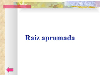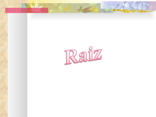 O documento fornece uma introdução sobre a variedade de plantas existentes e suas características básicas de necessidade de ar, água, luz e calor. Em seguida, classifica as plantas de acordo com a forma de cultivo, tamanho, se cultivadas pelo homem ou espontâneas. Por fim, descreve as partes principais da planta, nomeadamente a raiz, sua constituição e tipos.