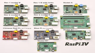 O Raspberry Pi é um computador do tamanho de um cartão de crédito desenvolvido no Reino Unido pela Fundação Raspberry Pi para fins educacionais. Existem vários modelos como o Raspberry Pi 3 de US$35 que possui processador ARM, memória RAM de 1GB, portas USB e HDMI. O Raspberry Pi executa sistemas operacionais como o Raspbian e pode ser conectado a monitores, teclados e outros acessórios como uma câmera.