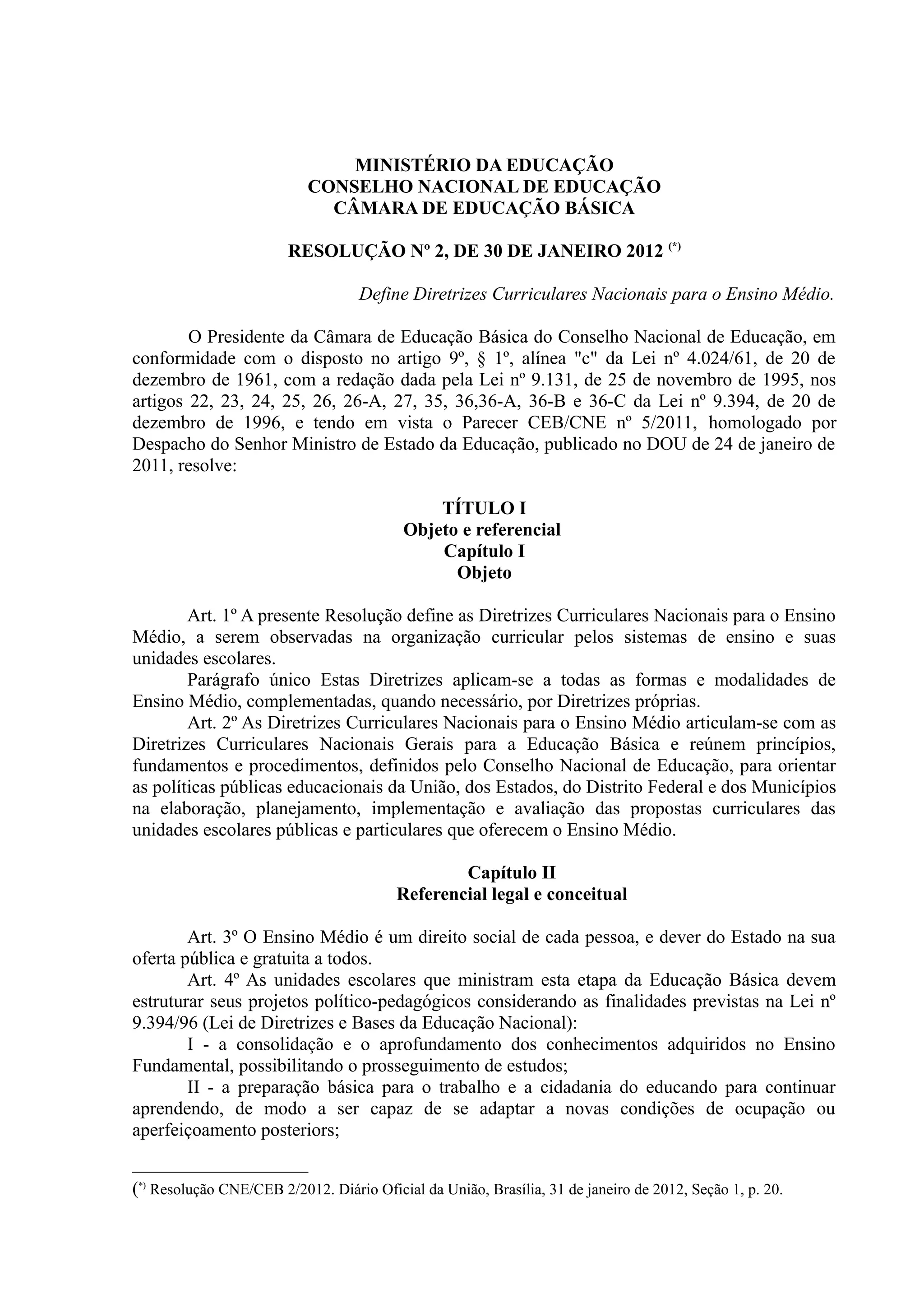 I. A resolução define diretrizes curriculares nacionais para o ensino médio, organizando o currículo em áreas de conhecimento como linguagens, matemática, ciências da natureza e ciências humanas.