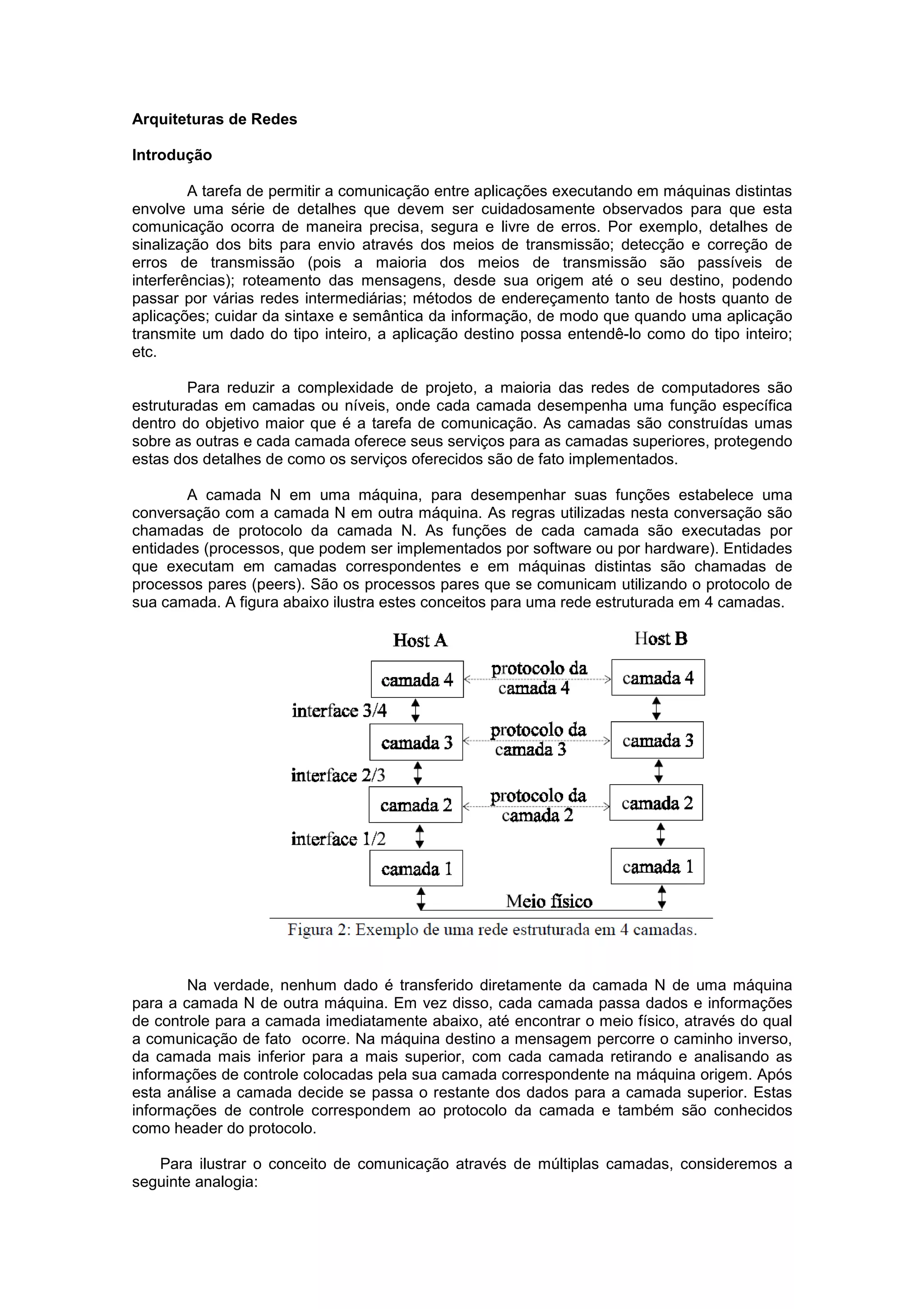 dentro do objetivo maior que é a tarefa de comunicação. As camadas são construídas umas