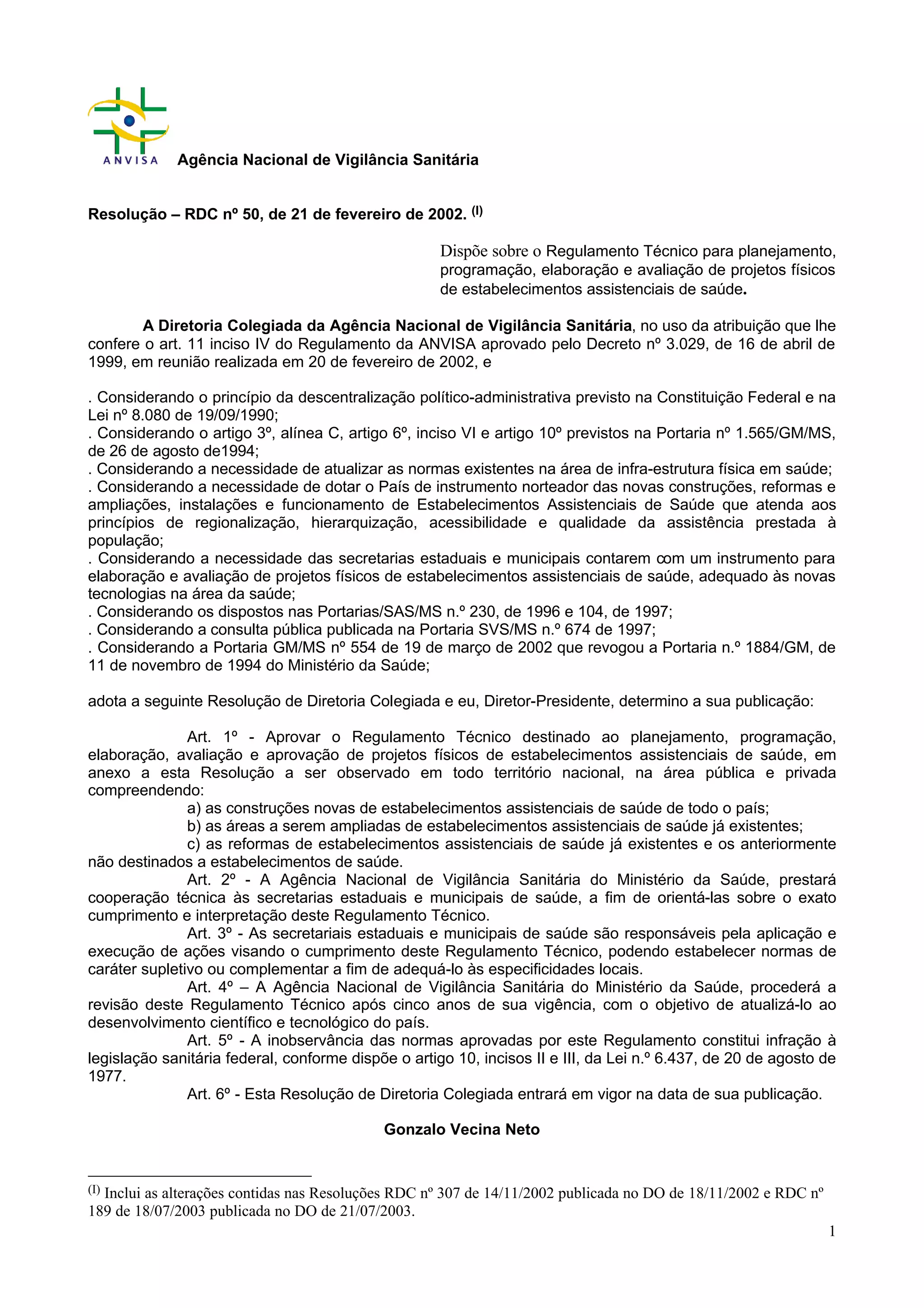 1. A resolução estabelece as diretrizes para a elaboração de projetos físicos de estabelecimentos de saúde no Brasil.