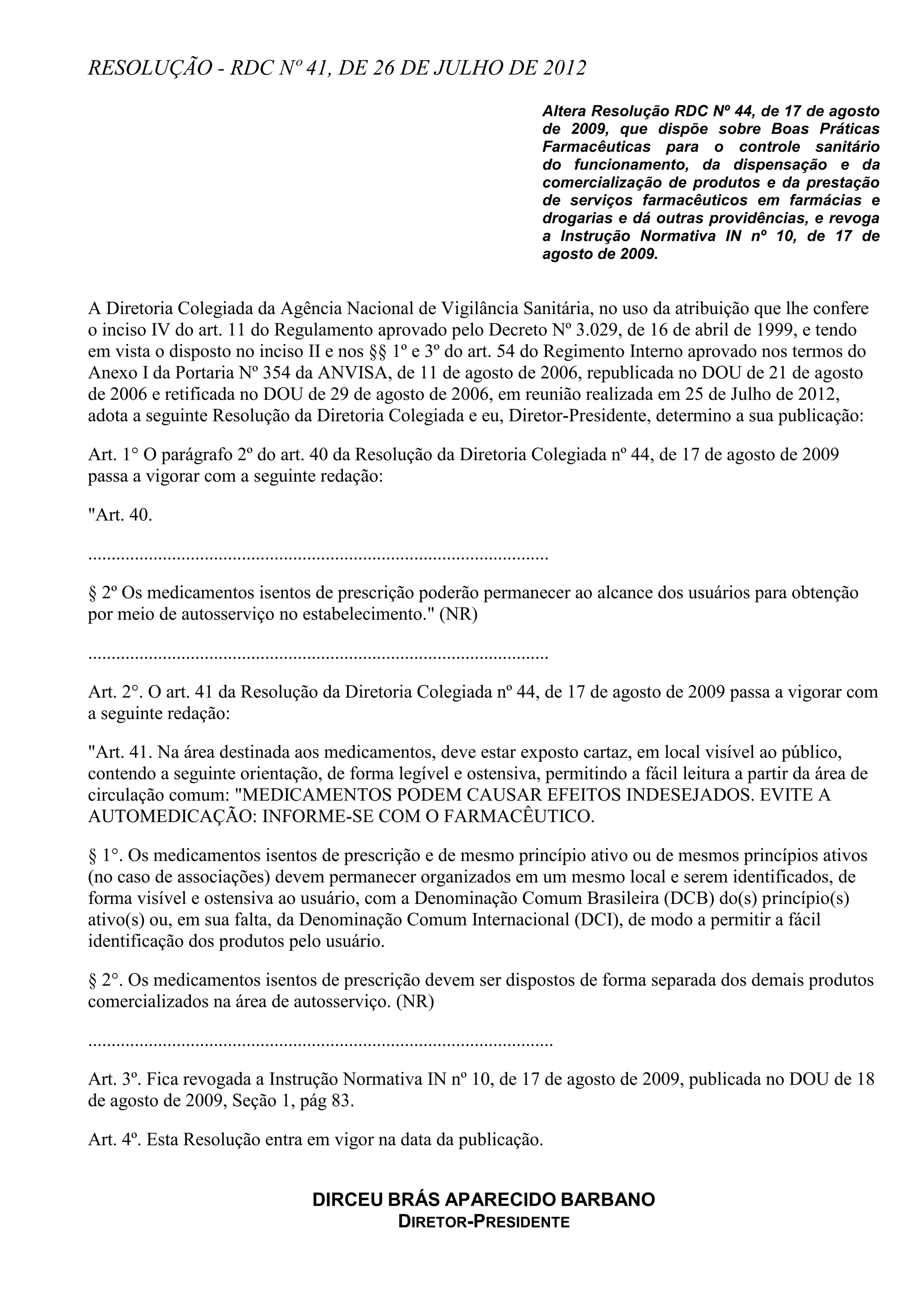 RESOLUÇÃO - RDCNº 41, DE 26 DE JULHO DE 2012