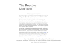 O documento discute a importância do React e dos princípios da programação reativa, enfatizando a necessidade de sistemas responsivos, resilientes e escaláveis em resposta à demanda crescente de aplicações. José Barbosa menciona a evolução das expectativas dos usuários e como a arquitetura de sistemas deve se adaptar para fornecer experiências consistentes e rápidas. Além disso, aborda conceitos como fluxos de dados assíncronos, a estrutura de componentes do React e o uso do Virtual DOM.
