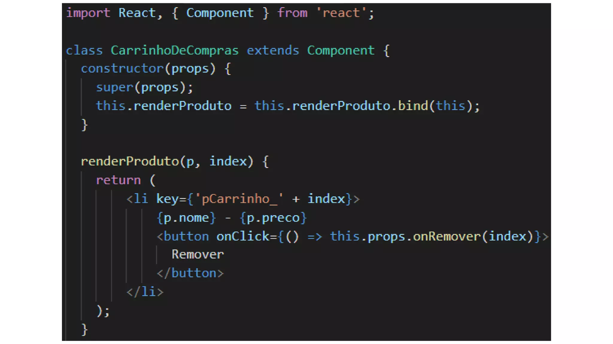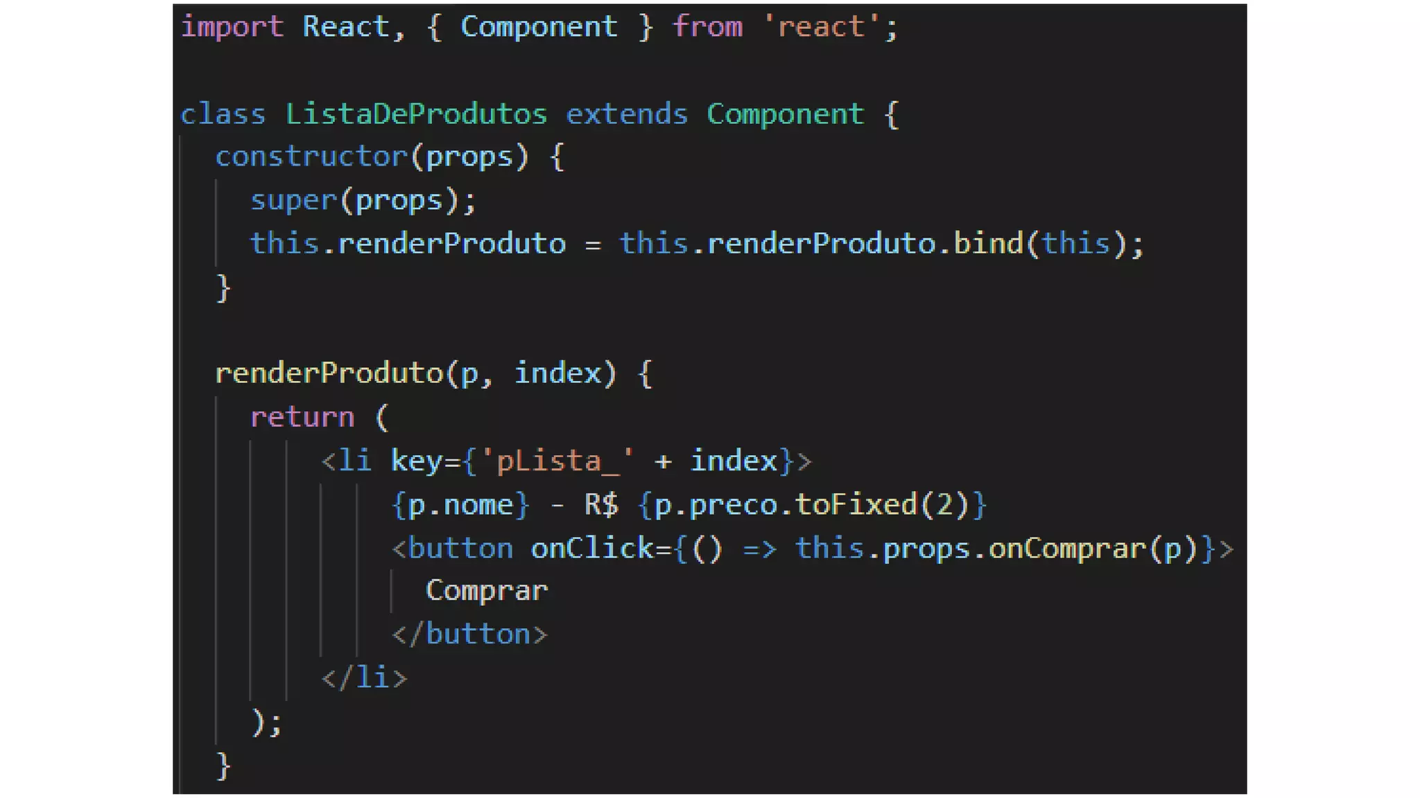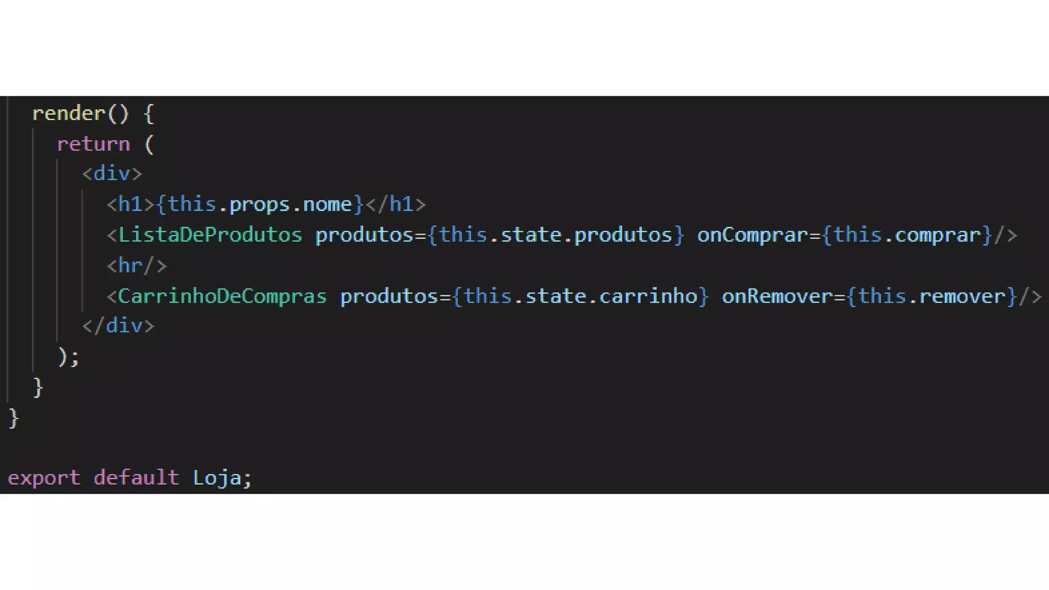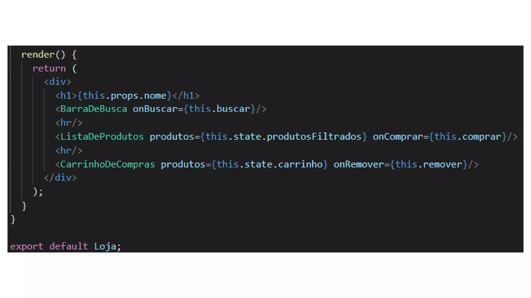 O documento descreve como criar e estruturar um projeto React simples para uma loja online, dividindo-o em componentes como barra de busca, lista de produtos e carrinho de compras. Ele explica como instalar o Create React App, definir o estado inicial dos componentes e fazer atualizações via setState, além de passar e acessar propriedades entre componentes.
