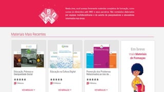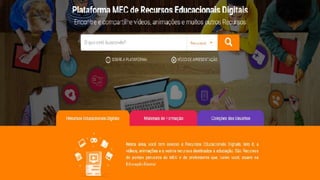 3. Também é apresentada a Plataforma MEC de Recursos Educacionais Digitais e orientações para a elaboração de planos de trabalho com o uso de tecnologias nas escolas.