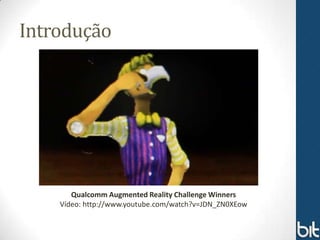 Este documento apresenta uma introdução à realidade aumentada, definindo o termo e discutindo suas aplicações atuais e futuras. Também descreve ferramentas para desenvolvimento como Wikitude e Qualcomm SDK e fornece tutoriais para criar aplicativos de RA para Android e visualizar modelos 3D em computadores e dispositivos móveis.