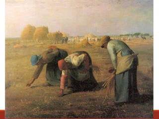 O documento descreve o movimento artístico do Realismo no século XIX. O Realismo surgiu na Europa como uma reação ao Romantismo, buscando retratar a realidade de forma objetiva, sem idealizações. Artistas como Courbet e Millet passaram a retratar cenas e pessoas comuns em suas obras, inclusive denunciando as desigualdades sociais da época.
