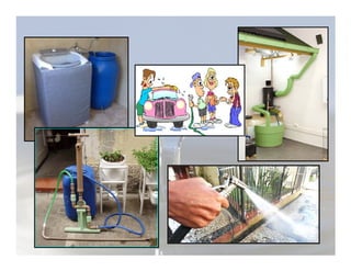 O documento discute a reciclagem da água, descrevendo a importância da água, os tipos de esgoto, e mecanismos para reciclagem e reuso da água cinzas e pluviais em residências, indústrias e agricultura de acordo com normas técnicas.