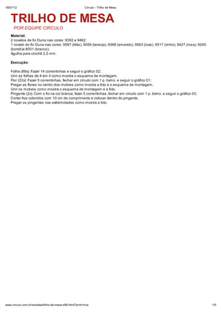 Lindo Trilho de Mesa com Fio Duna. Receita em Crochê