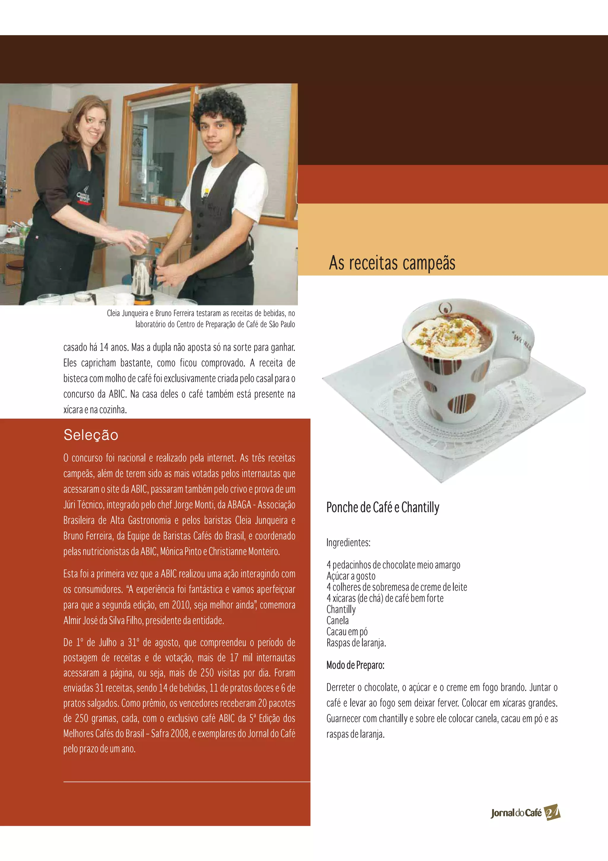 2) O concurso recebeu mais de 17 mil votos de internautas entre receitas de bebidas, pratos doces e salgados e as receitas campeãs foram premiadas com pacotes de café.
