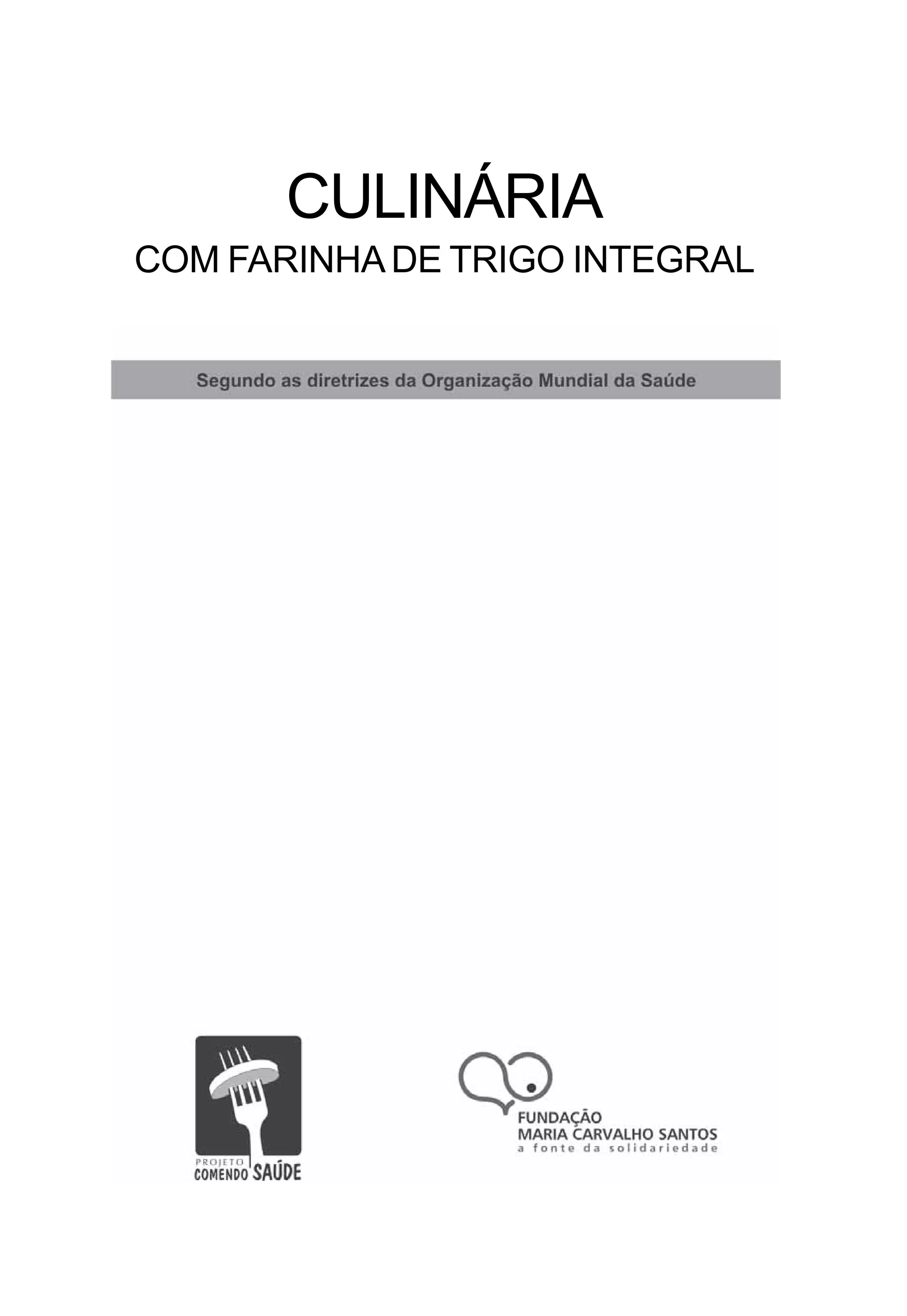 O documento fornece 75 receitas culinárias que utilizam farinha de trigo integral em substituição à farinha de trigo refinada. As receitas incluem pratos salgados como almôndegas, bifes e assados, e doces como bolos, pães e bolachas. O objetivo é promover uma alimentação saudável rica em fibras de acordo com as diretrizes da Organização Mundial da Saúde.