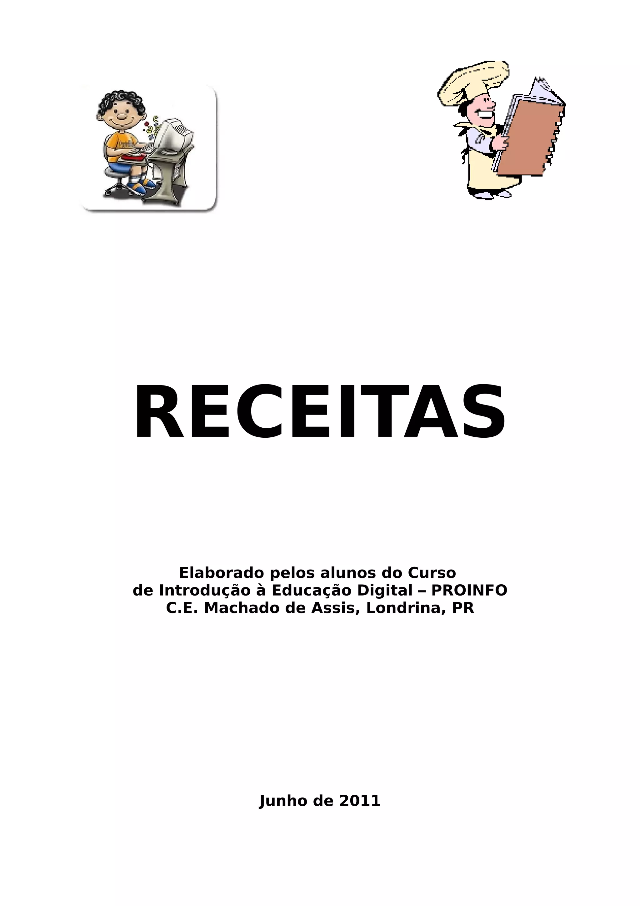 O documento apresenta receitas culinárias elaboradas por alunos de um curso de educação digital. As receitas incluem bolo de cenoura, bolinho de chuva, bolo de chocolate e pão de queijo mineiro.