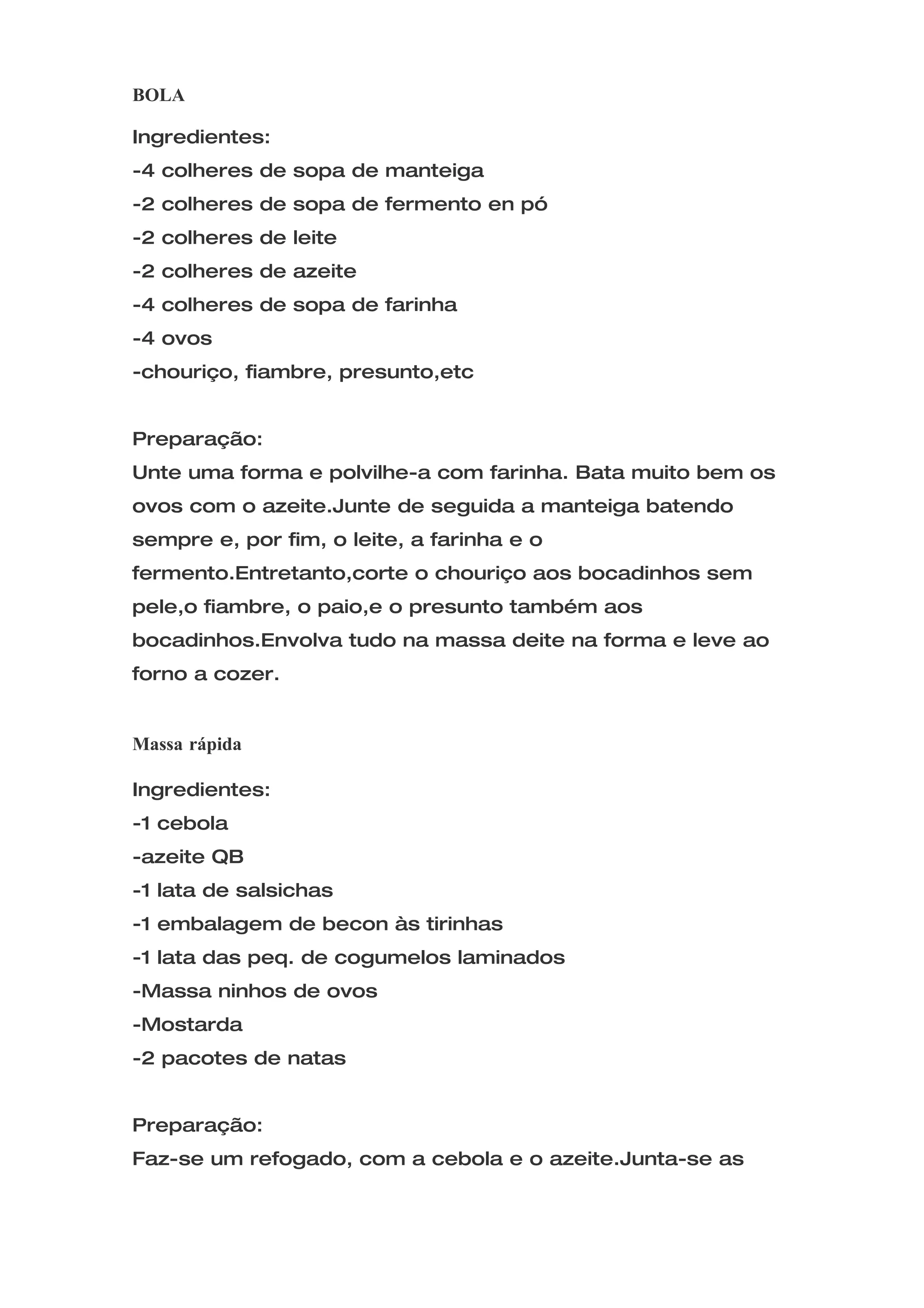 1) Uma bola recheada com chouriço, fiambre e presunto.