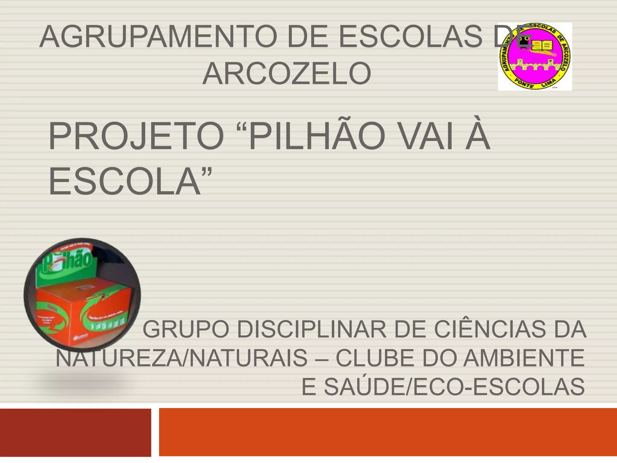 [1] O projeto "Pilhão vai à Escola" é dinamizado pela empresa Ecopilhas e visa sensibilizar estudantes e a comunidade escolar sobre a importância da reciclagem de pilhas e baterias usadas. [2] As escolas que participarem receberão pontos e prêmios em função da quantidade de itens coletados. [3] O projeto será implementado na escola pelo grupo de Ciências da Natureza com a colocação de pilhões para a coleta seletiva desses resíduos.