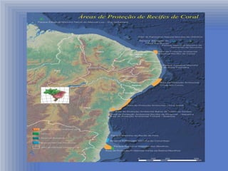 Os recifes de corais são ecossistemas marinhos formados por corais que vivem em simbiose com algas, abrigando grande biodiversidade. Eles funcionam como berçários marinhos, protegem o continente contra ondas e sustentam uma comunidade de animais e plantas. No Brasil, existem recifes nas regiões nordeste e sudeste.