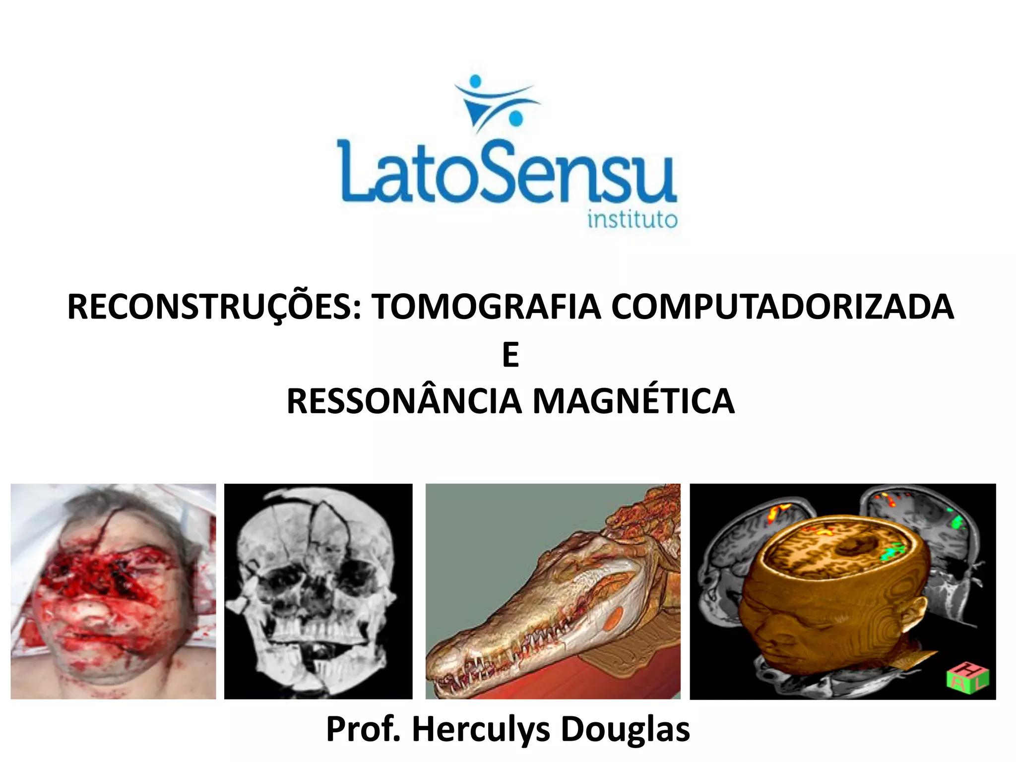 O documento aborda técnicas de reconstrução em tomografia computadorizada e ressonância magnética, incluindo algoritmos, formatos de imagem e aplicações práticas na radiologia forense e veterinária. Discussões sobre parâmetros como campo de visão e voxel são apresentadas, assim como questões técnicas para concursos públicos. Além disso, destaca-se a evolução tecnológica que aprimorou a manipulação de imagens e a reconstrução de dados tomográficos.