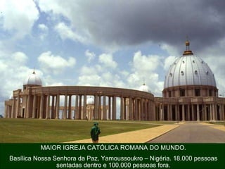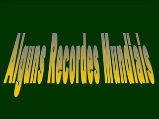 Este documento lista alguns dos maiores recordes mundiais em várias categorias, incluindo a maior igreja católica, piscina coberta, complexo de escritórios, shopping center, aeroporto, ponte, navio de passageiros, ônibus, estátua, edifício, palácio, estádio, escavadeira, mesquita e hotel.